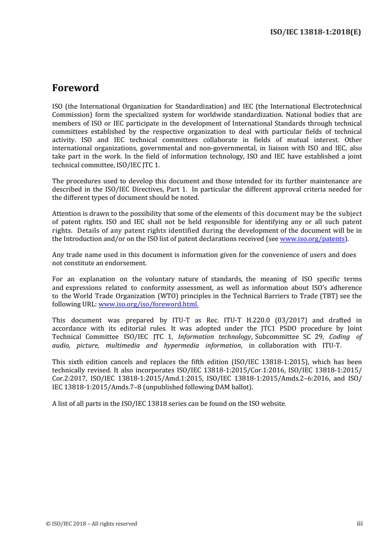 ISO/IEC 13818-1:2018 - Information technology — Generic coding of moving pictures and associated audio information — Part 1: Systems Released:3/2/2018
