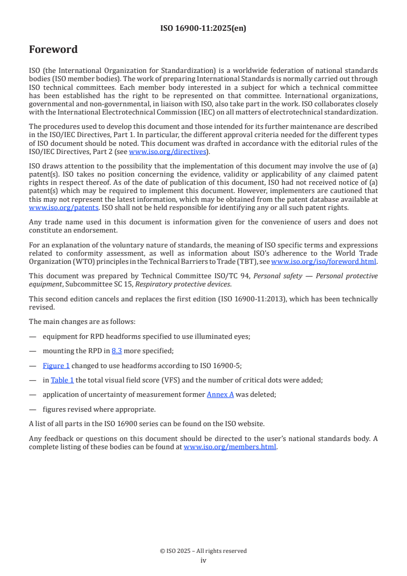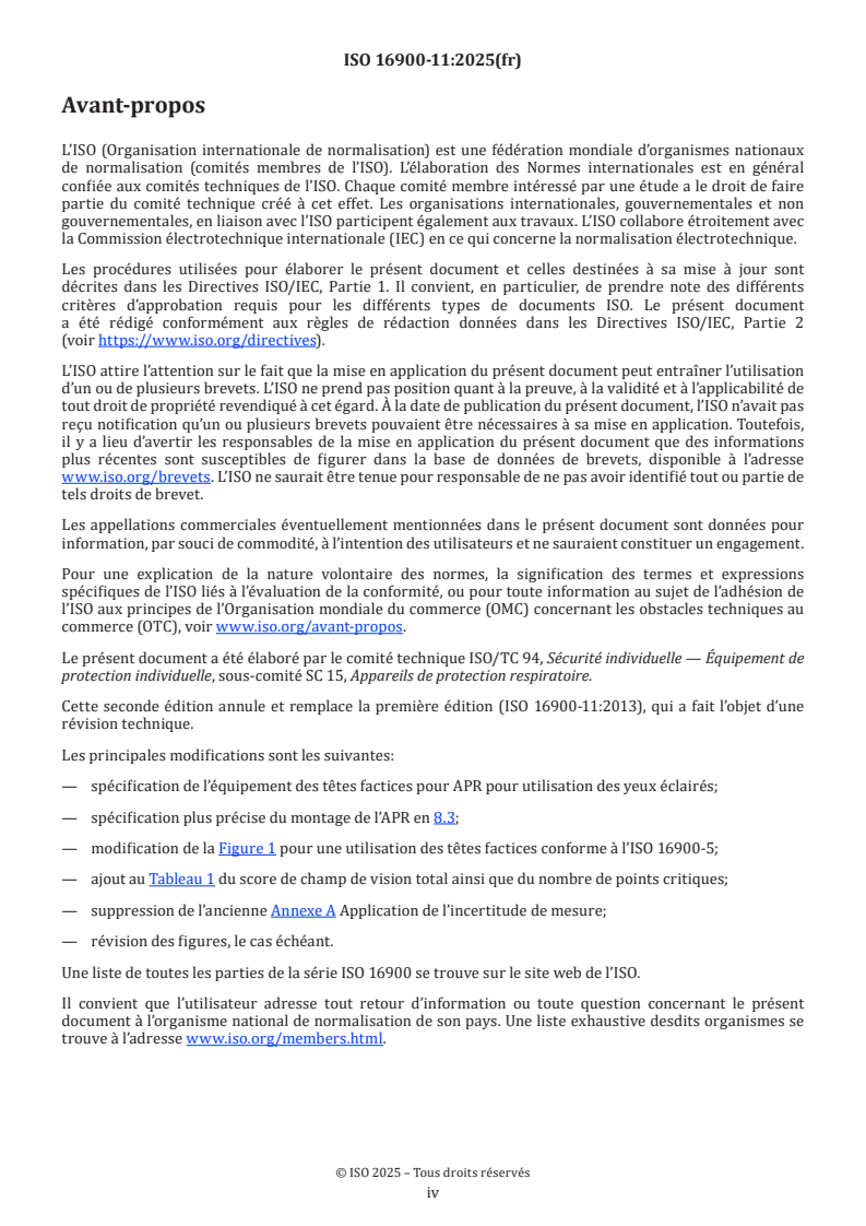 ISO 16900-11:2025 - Appareils de protection respiratoire — Méthodes d'essai et équipement d'essai — Partie 11: Détermination du champ de vision Released:23. 01. 2025