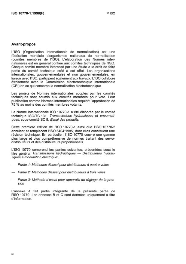 ISO 10770-1:1998 is a standard published by the International Organization for Standardization (ISO). Its full title is "Hydraulic fluid power — Electrically modulated hydraulic control valves — Part 1: Test methods for four-way directional flow control valves". This standard covers: Hydraulic fluid power — Electrically modulated hydraulic control valves — Part 1: Test methods for four-way directional flow control valves