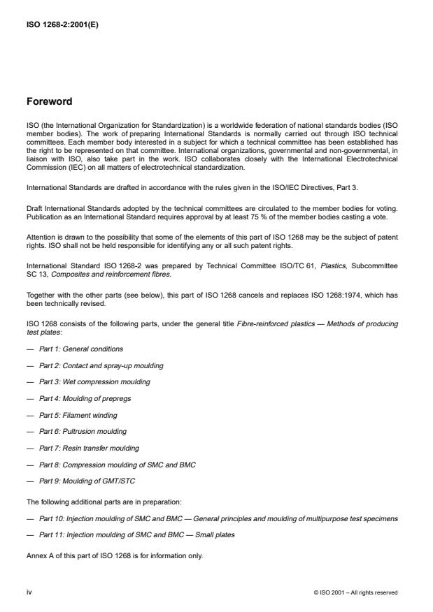 ISO 1268-2:2001 - Plastiques renforcés de fibres -- Méthodes de fabrication de plaques d'essai