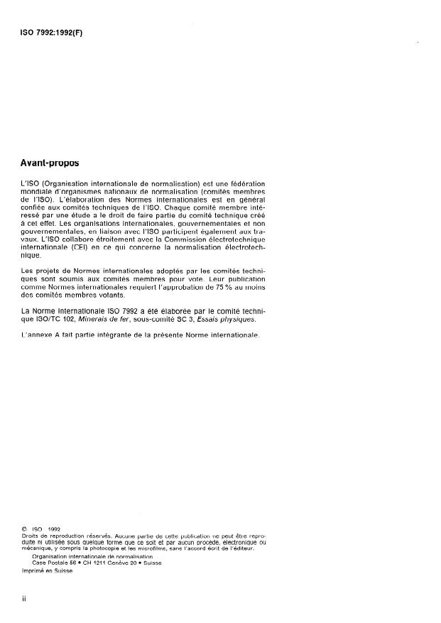 ISO 7992:1992 - Minerais de fer -- Détermination des propriétés de réduction sous charge