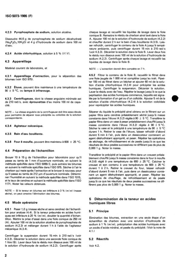 ISO 5073:1985 - Charbons bruns et lignites -- Dosage des acides humiques