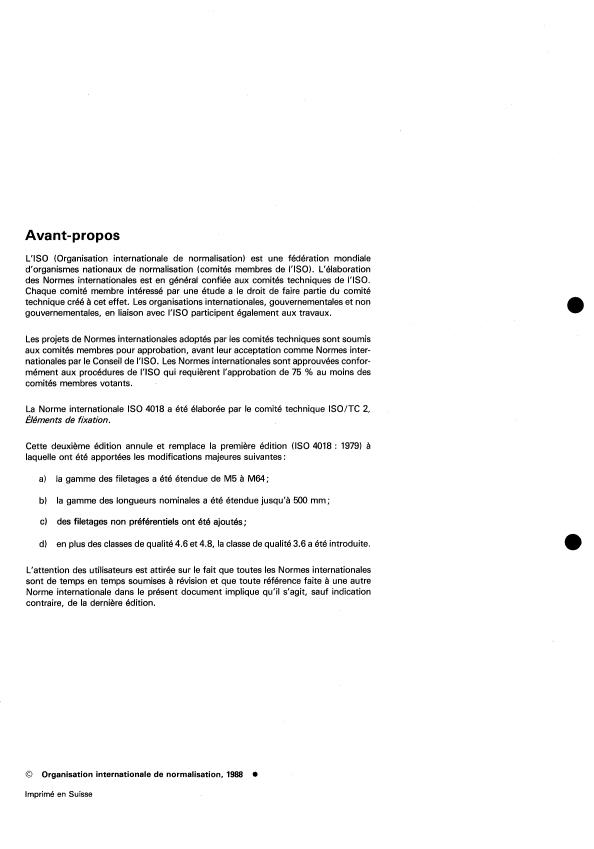 La Norme internationale IS0 4018 a été élaborée par le comité technique ISO/TC 2,