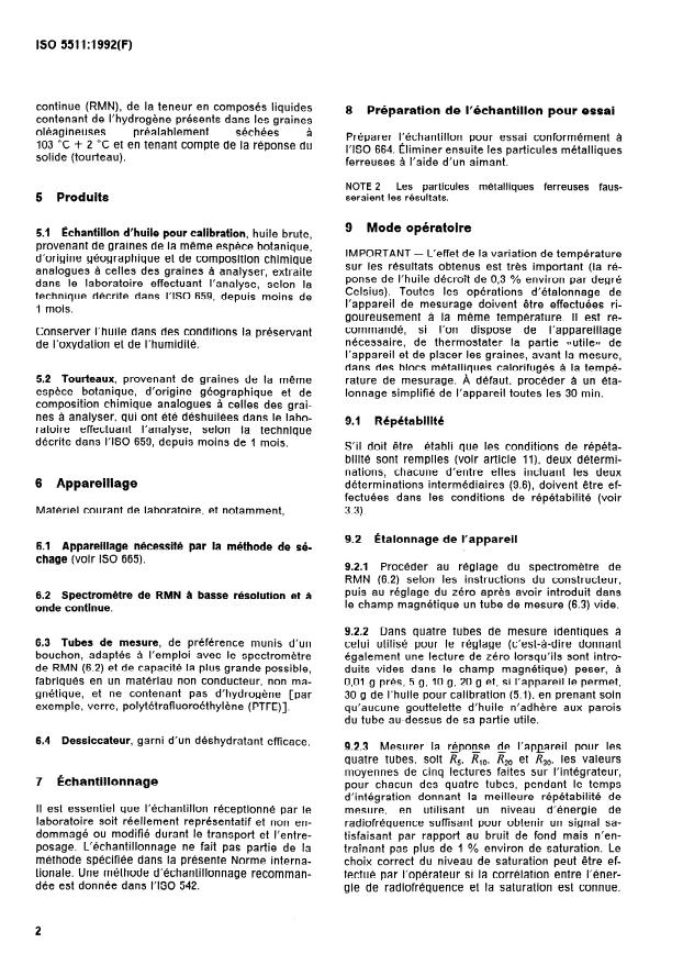 ISO 5511:1992 - Graines oléagineuses -- Détermination de la teneur en huile -- Méthode par spectrométrie de résonance magnétique nucléaire a basse résolution et a onde continue (Méthode rapide)
