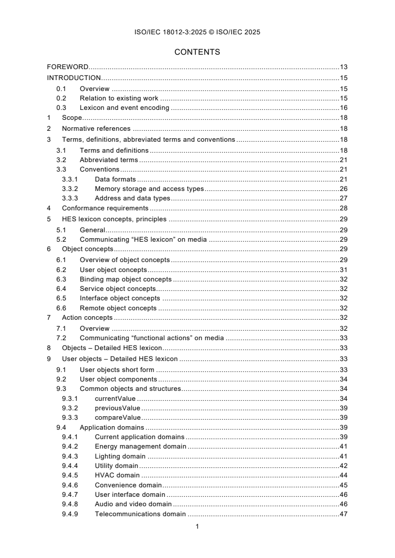 Keywords: ISO/IEC 18012-3:2025, Home electronic system, HES lexicon, product interoperability, smart home, IoT, HAN, WAN, binding map, service objects, sensors, actuators.