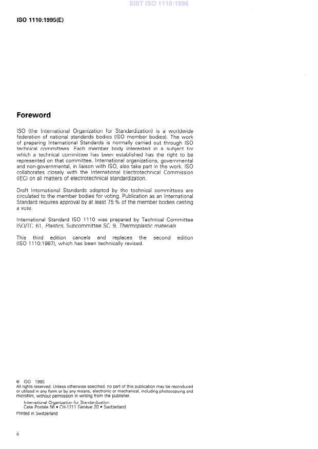 ISO 1110:1995 is classified under the following ICS (International Classification for Standards) categories: 83.080.20 - Thermoplastic materials. The ICS classification helps identify the subject area and facilitates finding related standards.