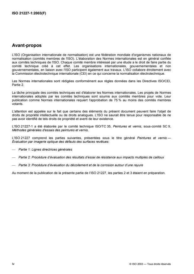 ISO 21227-1:2003 - Peintures et vernis -- Évaluation par imagerie optique des défauts des surfaces revetues