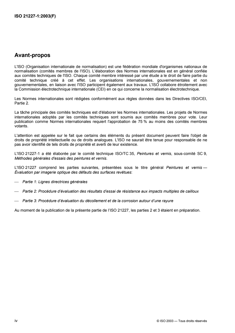 Keywords: ISO 21227-1, optical imaging, paints and varnishes, coating defects, image acquisition, image processing, image analysis, CCD, calibration, stone chipping, visual assessment.