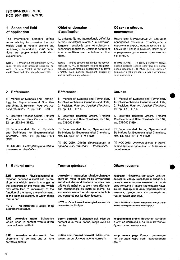 ISO 8044:1986 is a standard published by the International Organization for Standardization (ISO). Its full title is "Corrosion of metals and alloys — Terms and definitions". This standard covers: Corrosion of metals and alloys — Terms and definitions