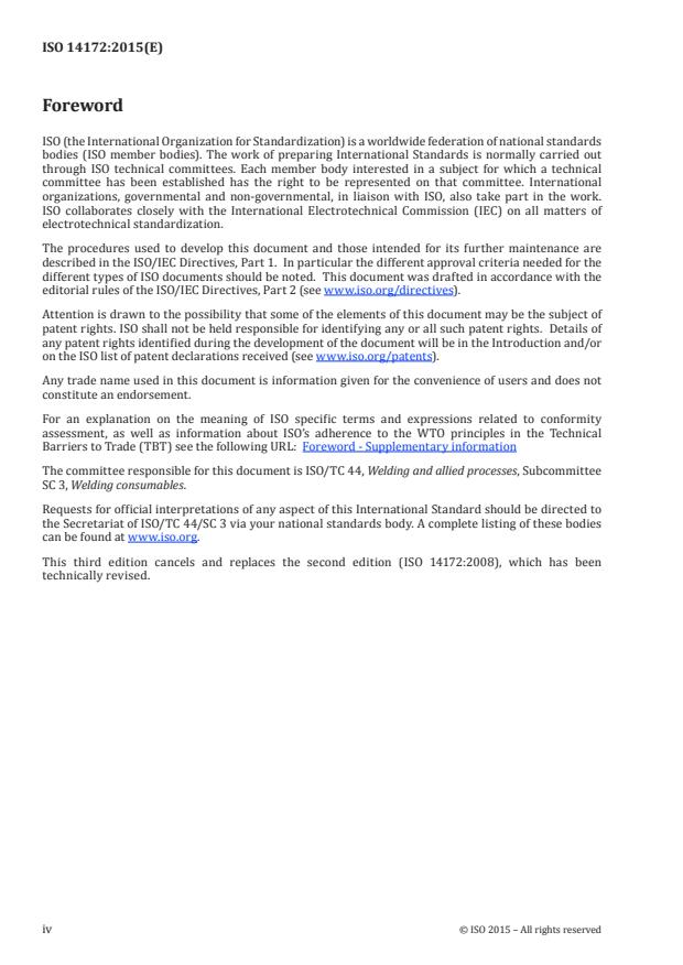 ISO 14172:2015 is a standard published by the International Organization for Standardization (ISO). Its full title is "Welding consumables — Covered electrodes for manual metal arc welding of nickel and nickel alloys — Classification". This standard covers: ISO 14172:2015 prescribes requirements for the classification of nickel and nickel-alloy covered electrodes for manual metal arc welding and overlaying. It includes those compositions in which the nickel content exceeds that of any other element.