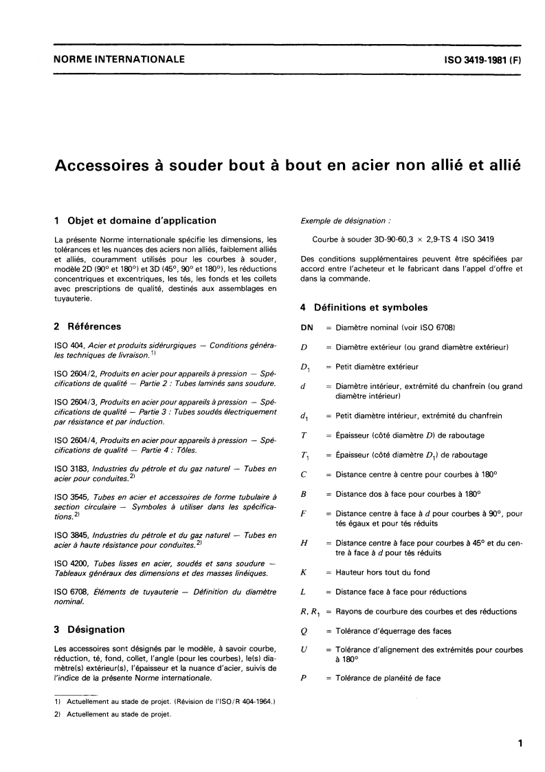 ISO 3419:1981 - Accessoires à souder bout à bout en acier non allié et allié/1/1981