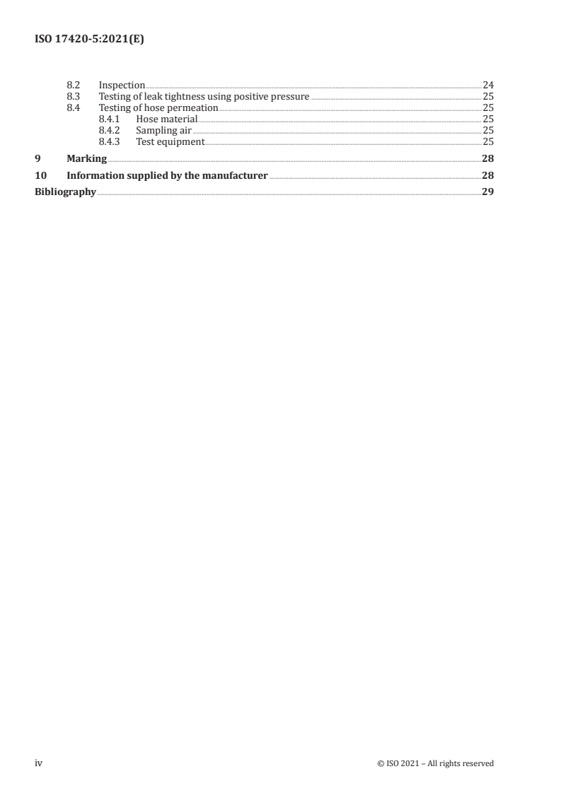 - Testing and inspection specifics such as leak tightness, hose permeation, sampling air, and test equipment requirements.