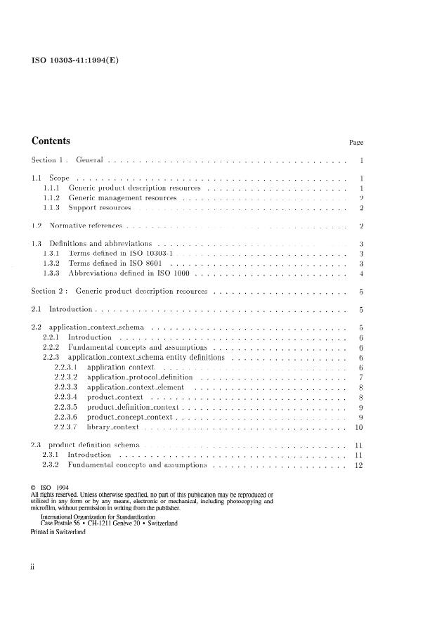 La présente partie de l'ISO 10303 spécifie les éléments suivants : ressources génériques de description de produits (section 2) ; ressources génériques de gestion (section 3) ; ressources de support (section 4). Les schémas spécifiés dans la présente partie de l'ISO 10303 sont organisés en fonction de ces sections.