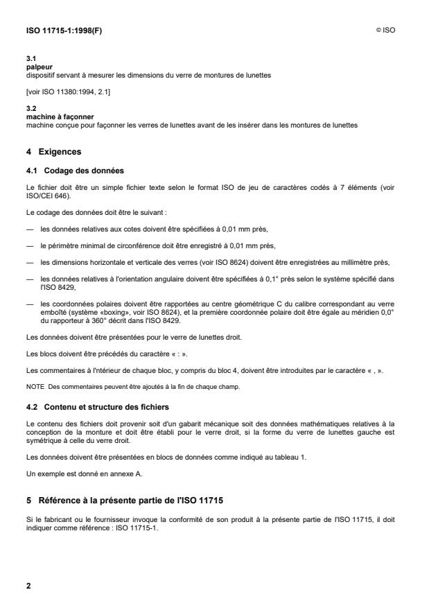 ISO 11715-1:1998 - Optique ophtalmique -- Format fichiers numériques utilisés pour le transfert d'information en façonnage des verres de lunettes