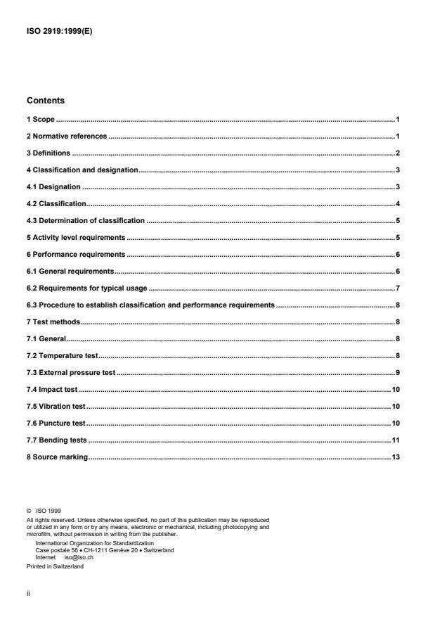 ISO 2919:1999 is associated with the following European legislation: EU Directives/Regulations: TRRTP121. When a standard is cited in the Official Journal of the European Union, products manufactured in conformity with it benefit from a presumption of conformity with the essential requirements of the corresponding EU directive or regulation.
