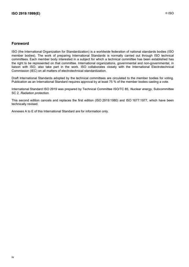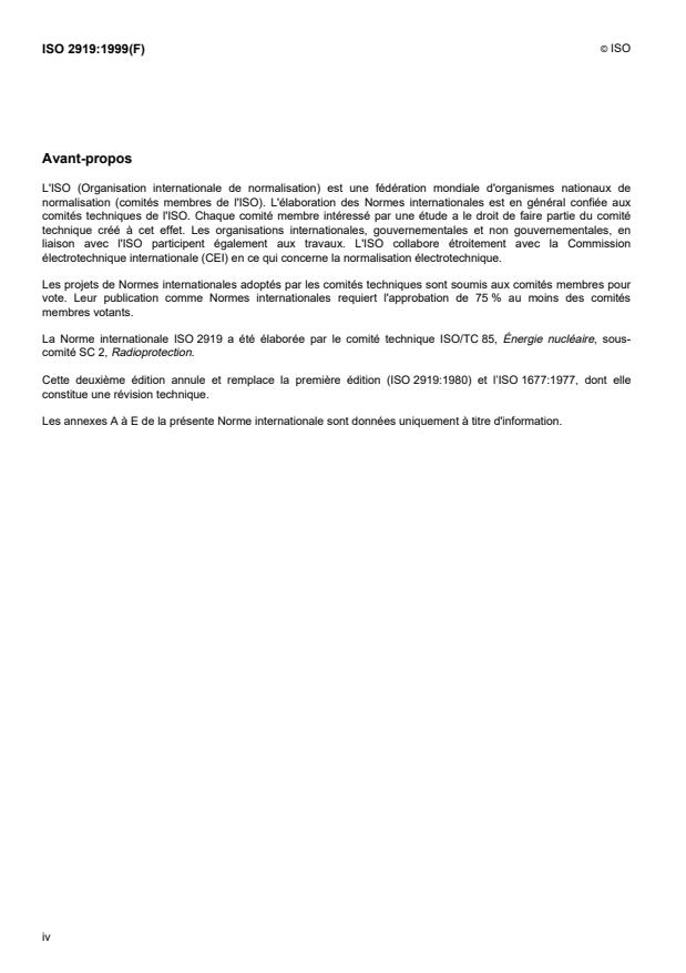 International Standard ISO 2919 was prepared by Technical Committee ISO/TC 85, Nuclear energy, Subcommittee