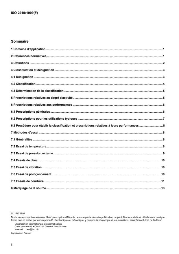 ISO 2919:1999 is a standard published by the International Organization for Standardization (ISO). Its full title is "Radiation protection - Sealed radioactive sources - General requirements and classification". This standard covers: Radiation protection - Sealed radioactive sources - General requirements and classification