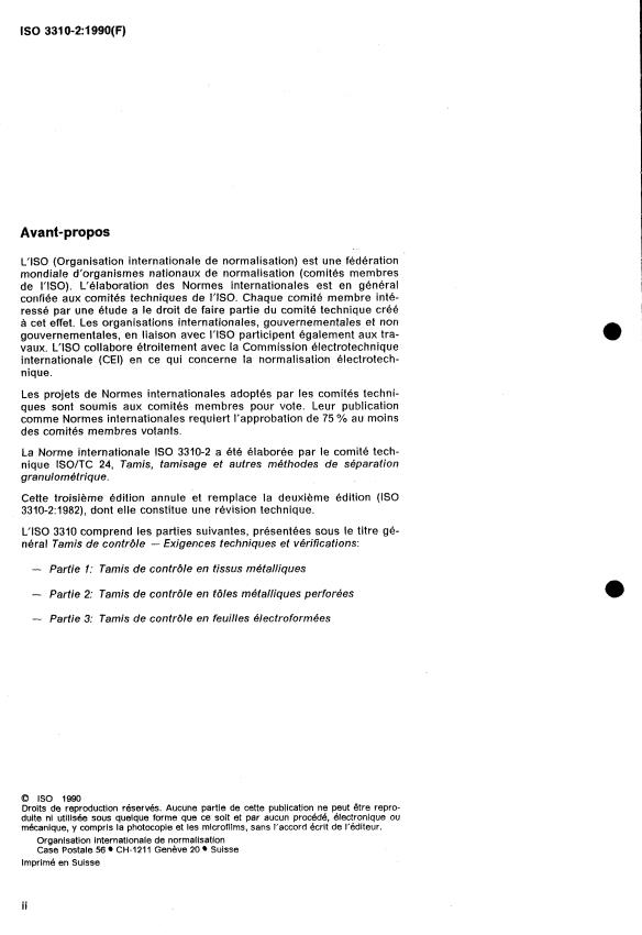ISO 3310-2:1990 is a standard published by the International Organization for Standardization (ISO). Its full title is "Test sieves — Technical requirements and testing — Part 2: Test sieves of perforated metal plate". This standard covers: Test sieves — Technical requirements and testing — Part 2: Test sieves of perforated metal plate