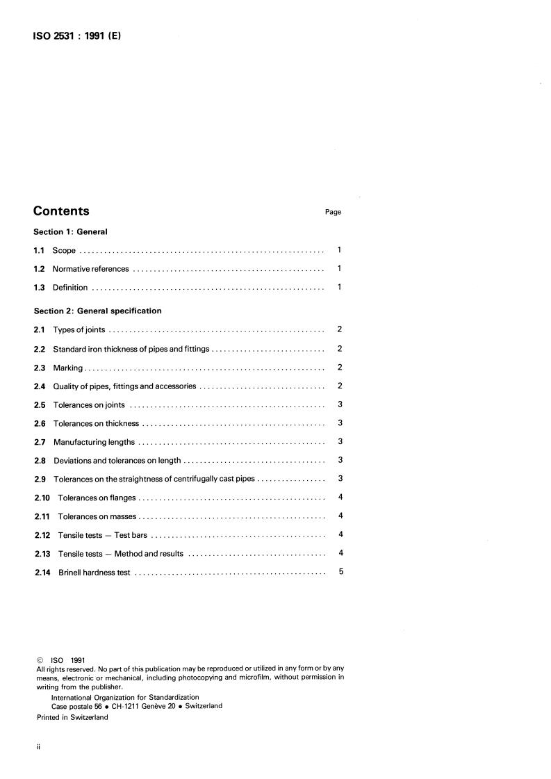 ISO 2531:1991 is a standard published by the International Organization for Standardization (ISO). Its full title is "Ductile iron pipes, fittings and accessories for pressure pipelines". This standard covers: Ductile iron pipes, fittings and accessories for pressure pipelines