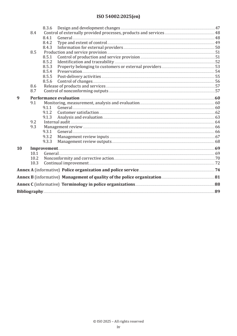 - Improvement: nonconformity and corrective action, and continual improvement of policing services.