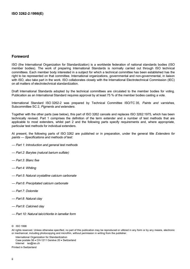 ISO 3262-2:1998 - Extenders for paints -- Specifications and methods of test