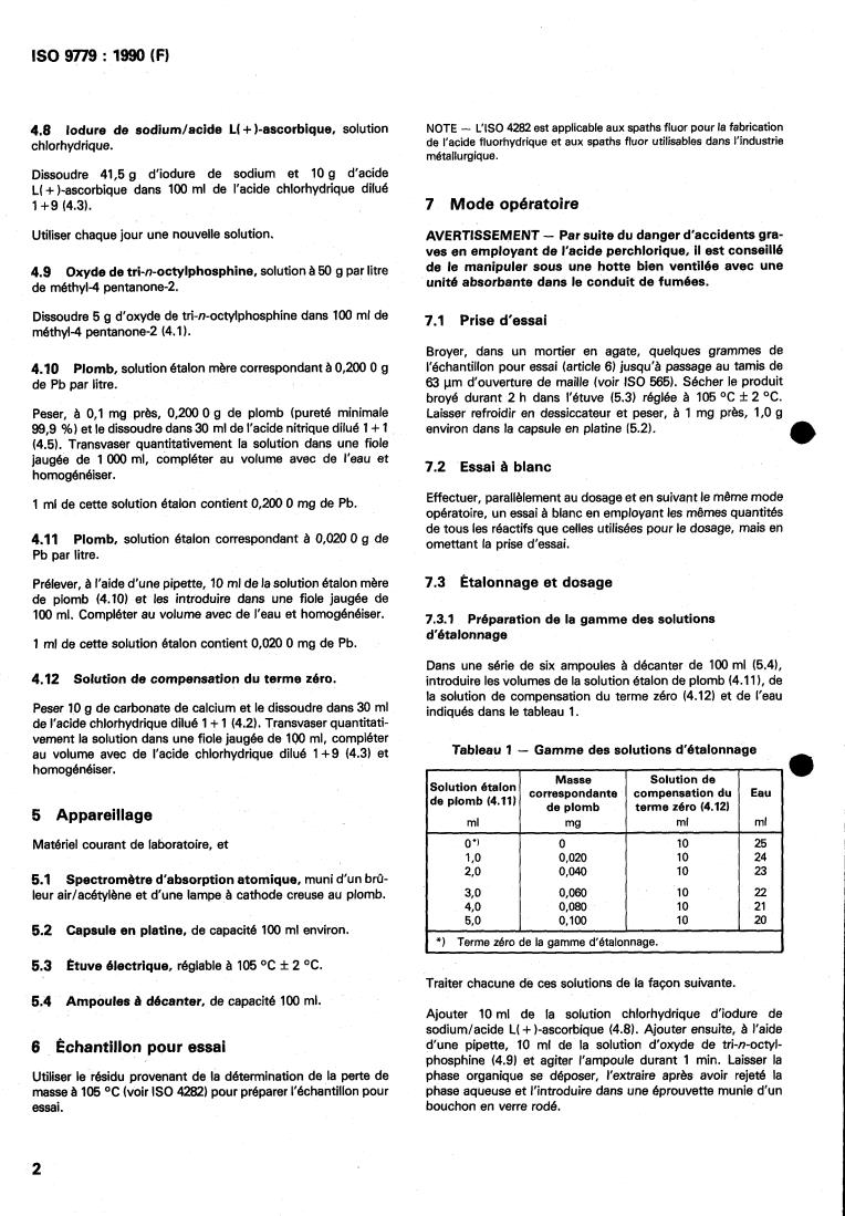 1 ml de cette solution étalon contient 0,200 O mg de Pb.