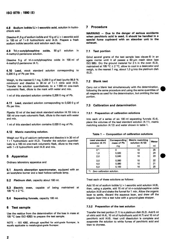ISO 9779:1990 - Metallurgical-grade fluorspar — Determination of lead content — Solvent extraction atomic absorption spectrometric method Released:3/8/1990