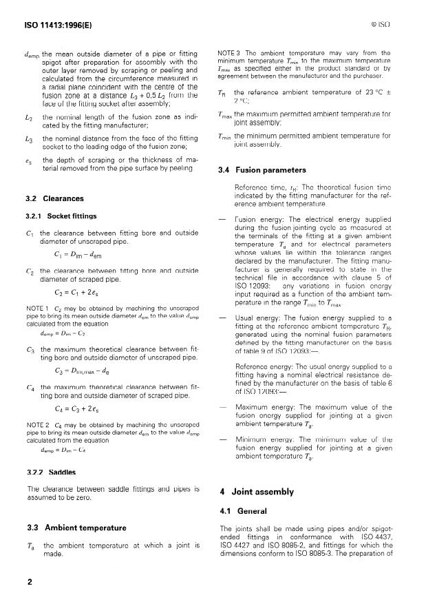 ISO 11413:1996 is a standard published by the International Organization for Standardization (ISO). Its full title is "Plastics pipes and fittings — Preparation of test piece assemblies between a polyethylene (PE) pipe and an electrofusion fitting". This standard covers: Specifies a method for the preparation of test pieces assembled from polyethylene pipes or spigot-ended fittings and electrofusion fittings.