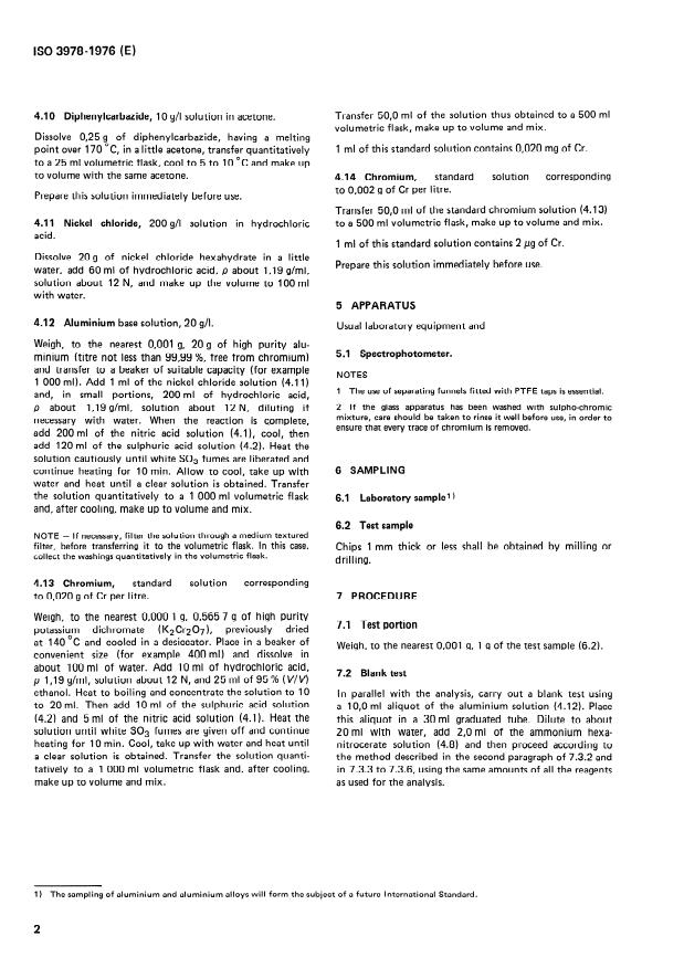 Keywords: ISO 3978, chromium determination, aluminium alloys, spectrophotometric method, diphenylcarbazide, chromium analysis, chemical analysis, metallurgical standards, alloy composition, quality control, spectrophotometry, chromium in aluminium