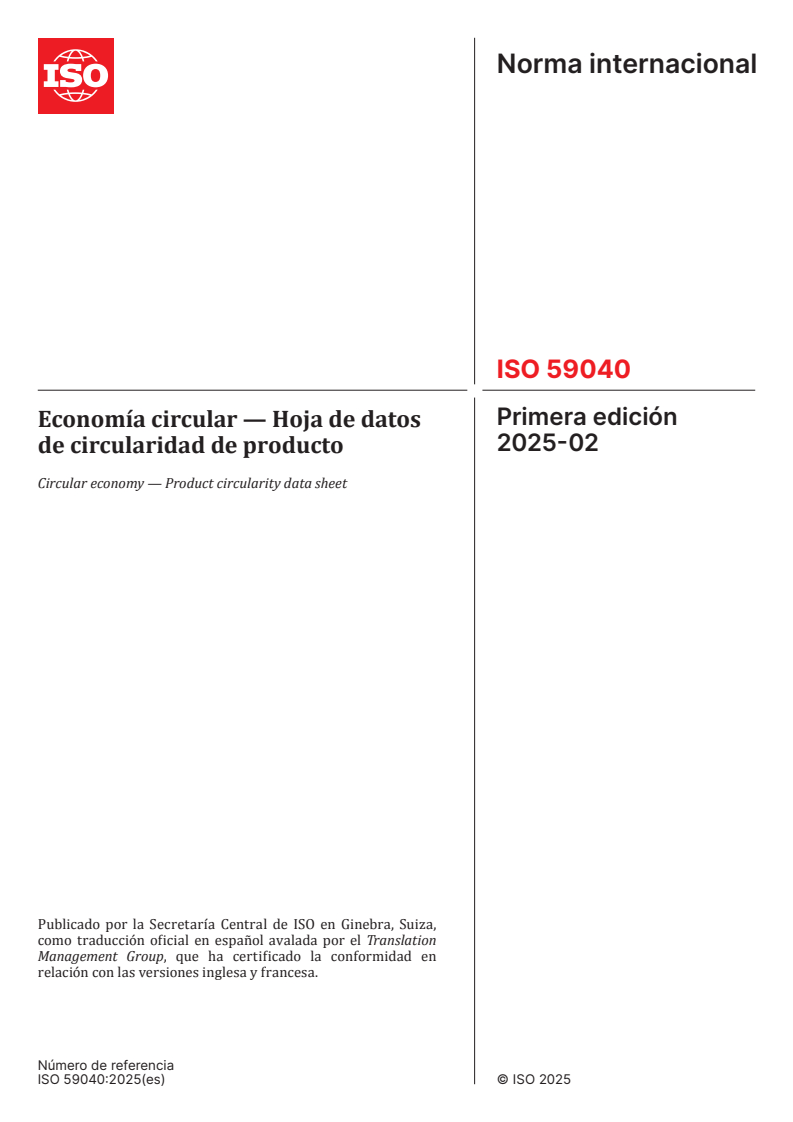 ISO 59040:2025 - Circular economy — Product circularity data sheet Released:3. 02. 2025
