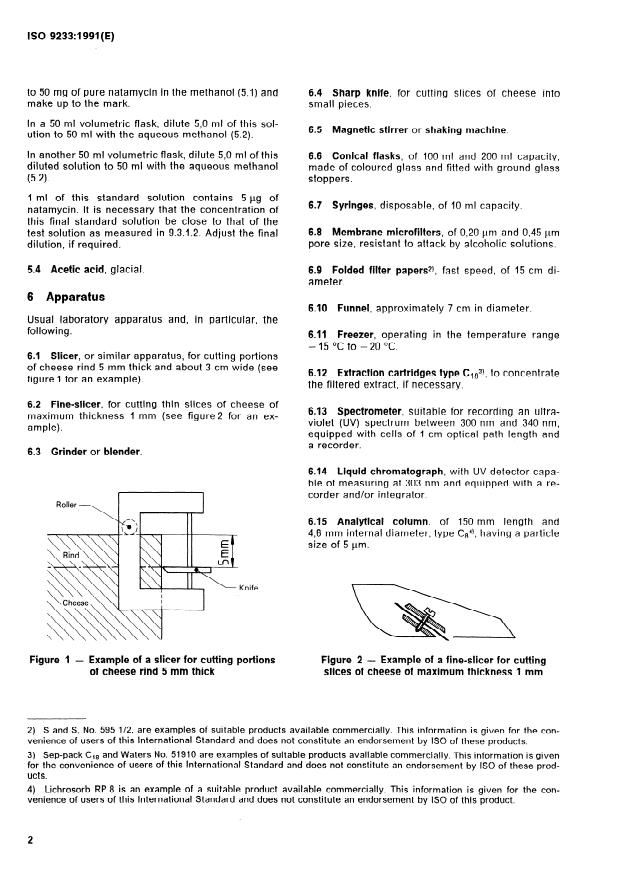 ISO 9233:1991 is a standard published by the International Organization for Standardization (ISO). Its full title is "Cheese and cheese rind — Determination of natamycin content — Method by molecular absorption spectrometry and by high-performance liquid chromatography". This standard covers: Specifies a method which is suitable to control a maximum tolerance of natamycin on the cheese rind at a content of 1 mg/dm^2. The limit of detection is 0,5 mg/kg. Describes reagents, apparatus, sampling, and test procedure. Annex A is for information only.