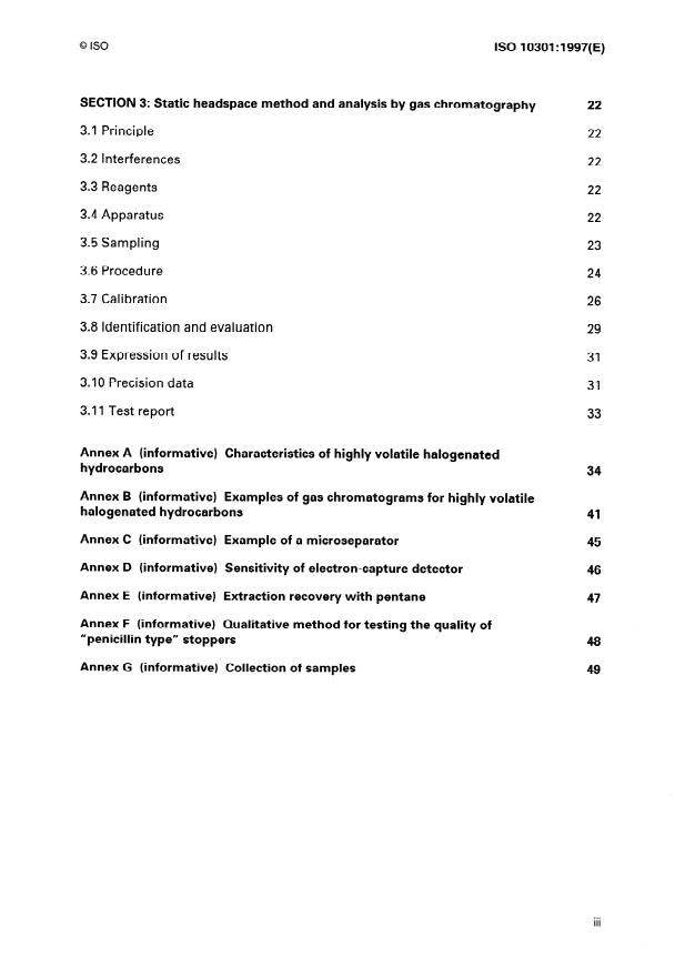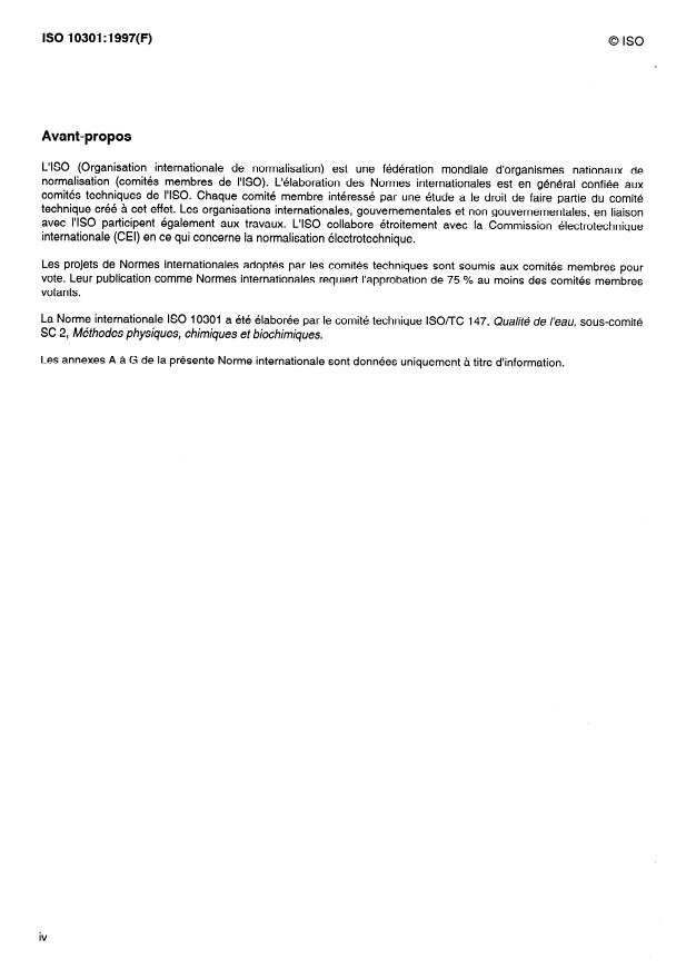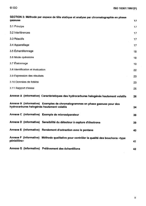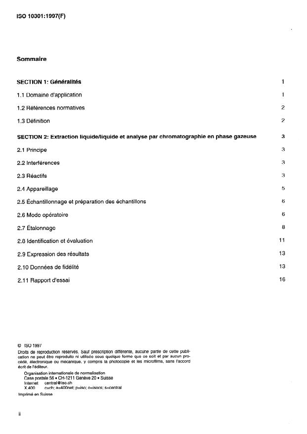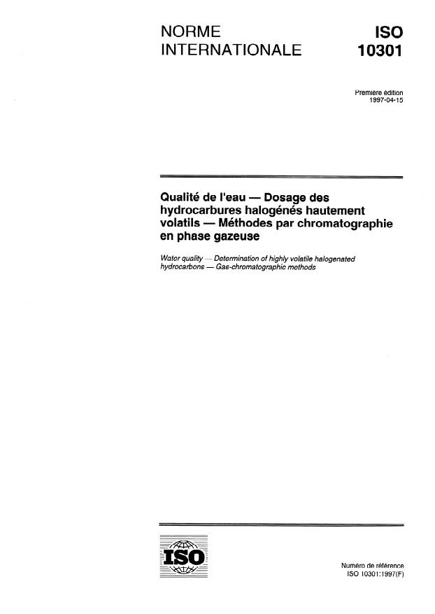 Keywords: ISO 10301:1997, water quality, highly volatile halogenated hydrocarbons, gas chromatography, liquid/liquid extraction, static headspace, electron‑capture detector, sampling, analytical quality control.