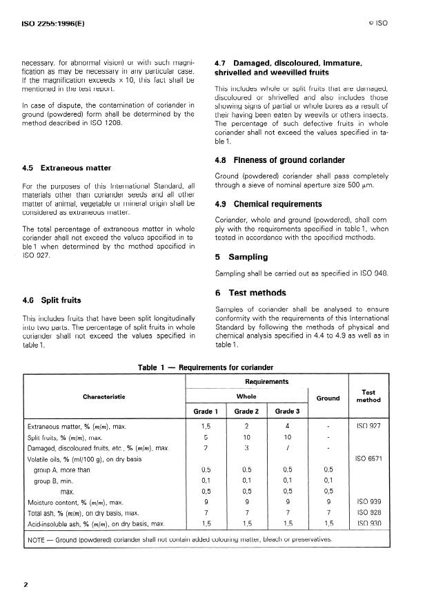 ISO 2255:1996 - Coriander (Coriandrum sativum L.), whole or ground (powdered) -- Specification