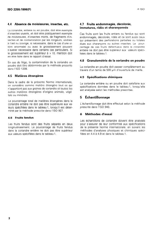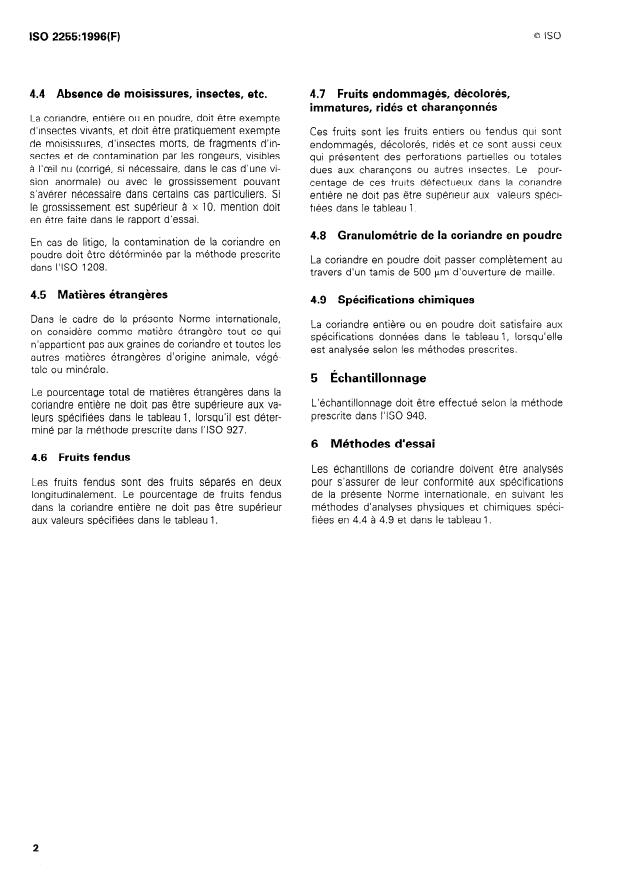 ISO 2255:1996 - Coriandre (Coriandrum sativum L.) entiere et coriandre en poudre -- Spécifications