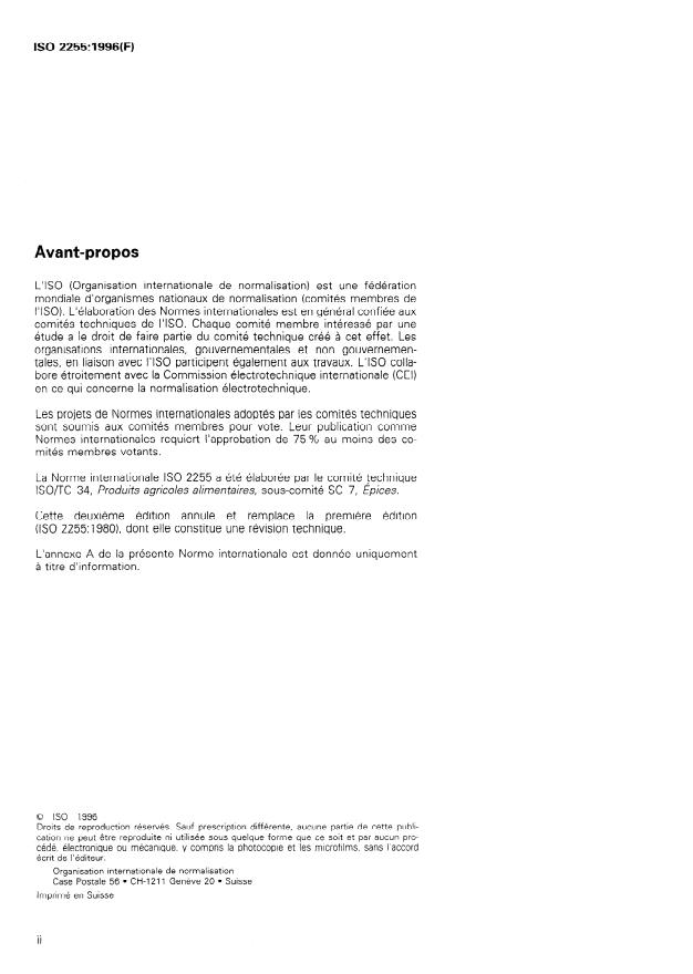 ISO 2255:1996 references and aligns with other ISO standards concerning spices and botanical products, including: