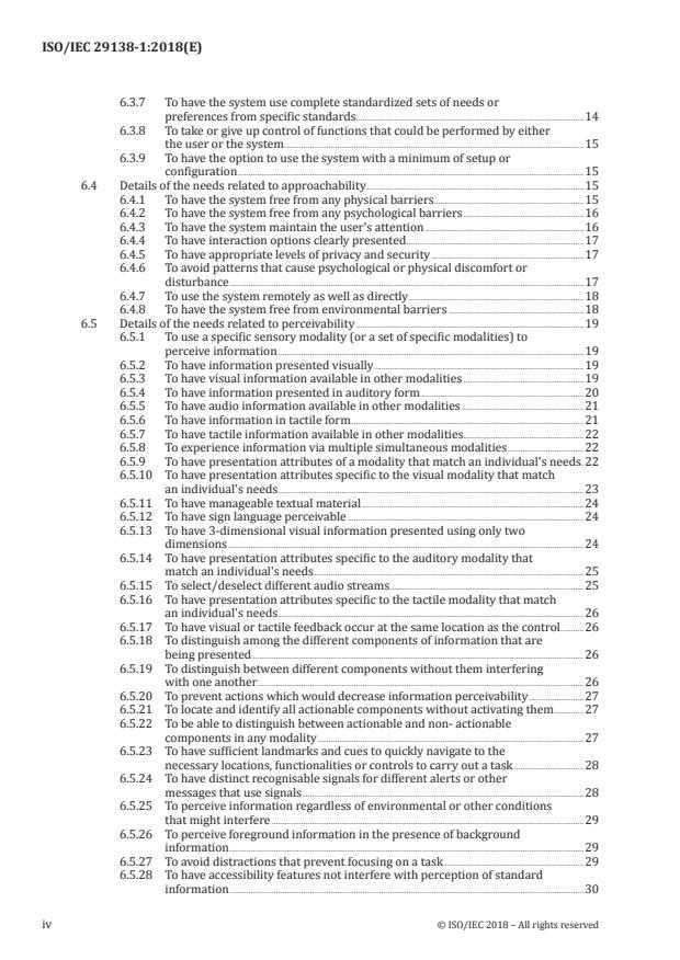This document identifies a collection of user accessibility needs that diverse users have of ICT systems to make these systems accessible to them. Each user accessibility need might be required of a system by an individual. Different users can have different sets of user accessibility needs in different contexts. While this set of user accessibility needs was developed for the domain of ICT, many of the user accessibility needs in this set also apply in other domains. This document does not provide requirements or specific processes and methods for the application and evaluation of user accessibility needs. However, it could inform the development of such requirements (see 5.4). This document is not designed for certification purposes or regulatory or contractual use. The user accessibility needs in this document are intended to inform and encourage those responsible for accessibility to go beyond the minimum provisions of accessibility legislation and regulations.