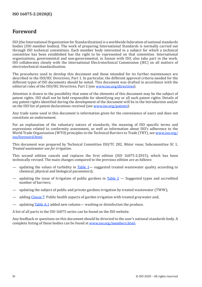 - ISO/TC 282/SC 1/WG 1 - Treated wastewater use for irrigation projects