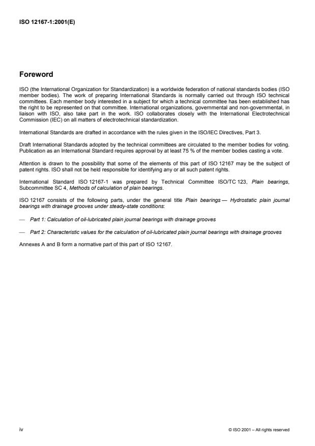 ISO 12167-1:2001 - Plain bearings -- Hydrostatic plain journal bearings with drainage grooves under steady-state conditions