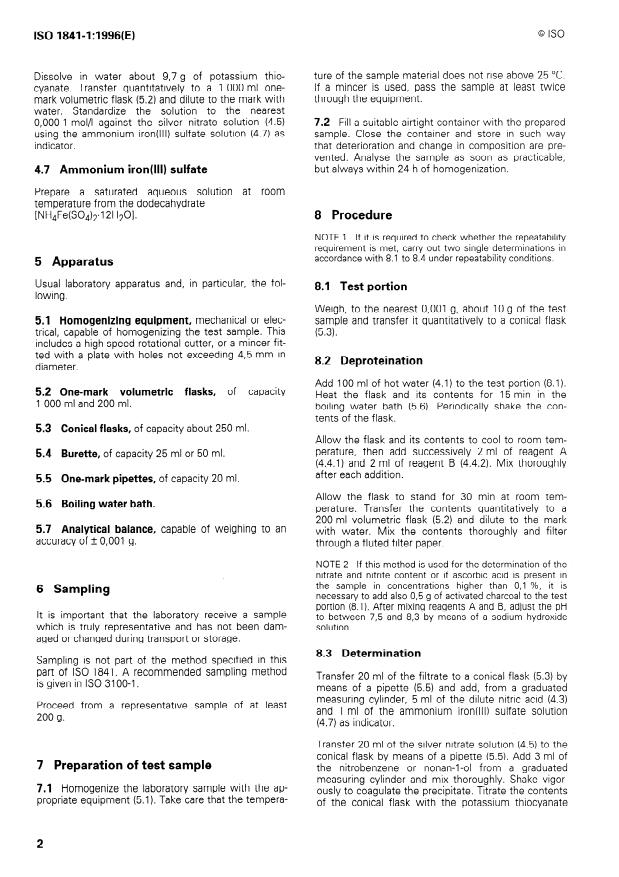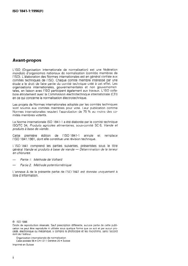 ISO 1841-1:1996 - Meat and meat products -- Determination of chloride content