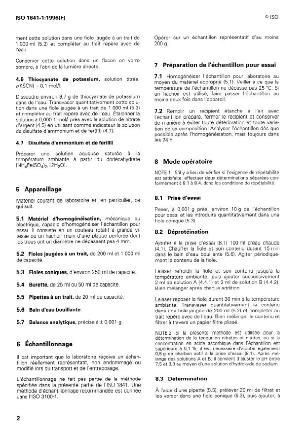 Keywords: ISO 1841-1, chloride determination, Volhard method, meat products, sodium chloride content, meat analysis, food quality control, meat processing standards, chemical analysis of meat, international food standards.
