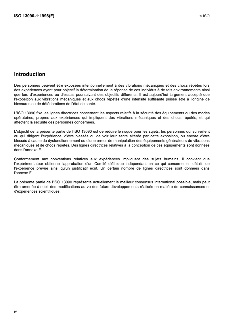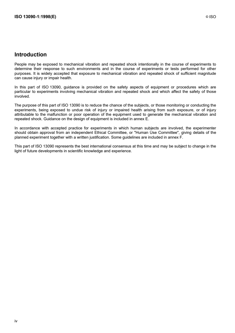 Keywords: ISO 13090-1, mechanical vibration, repeated shock, whole-body vibration, human subjects, safety guidance, laboratory tests, ethical committee, equipment design.