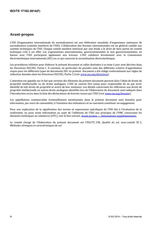 ISO/TS 17182:2014 is classified under the following ICS (International Classification for Standards) categories: 13.080.10 - Chemical characteristics of soils. The ICS classification helps identify the subject area and facilitates finding related standards.