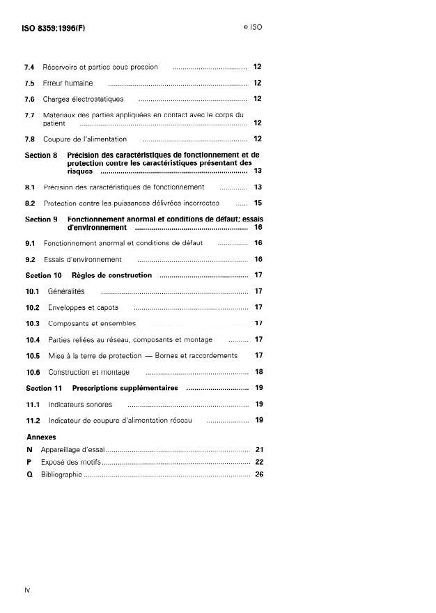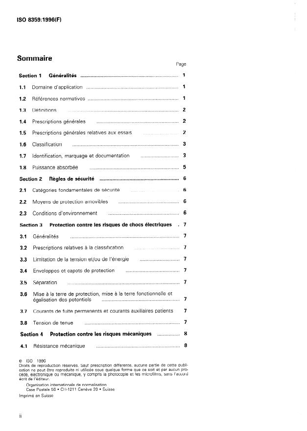 L'ISO 8359 fait partie d'une série de Normes internationales basées sur la CEI 601-1. Dans la CEI 601-1 (la «Norme générale»), il est fait référence à ce type de Norme internationale en tant que «Norme particulière». Comme indiqué au paragraphe 1.3 de la CEI 601-1:1988, les prescriptions de la présente Norme internationale ont priorité sur les prescriptions de la CEI 601-1. Le domaine d'application indiqué à l'article 1 de la CEI 601-1:1988 est applicable, à l'exception du paragraphe 1.1 qui est remplacé par ce qui suit: La présente Norme internationale prescrit les exigences de sécurité pour les concentrateurs d'oxygène, comme indiqué en 1.3.8 (dans la présente Norme internationale). La présente Norme internationale ne s'applique pas aux concentrateurs d'oxygène prévus pour fournir du gaz à plusieurs patients par l'intermédiaire de conduites de gaz médicaux, ni à ceux prévus pour être utilisés en présence d'anesthésiques et/ou d'agents de nettoyage inflammables. Le domaine d'application de la présente Norme internationale ne se limite pas aux concentrateurs d'oxygène à membrane et aux appareils à absorption par oscillation (voir Introduction), car il peut exister d'autres méthodes pour concentrer l'oxygène et la présente Norme internationale n'a pas pour but de faire obstacle à des progrès futurs.