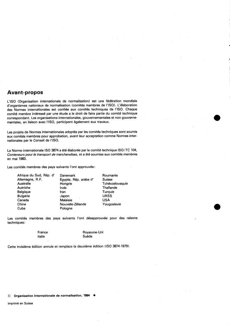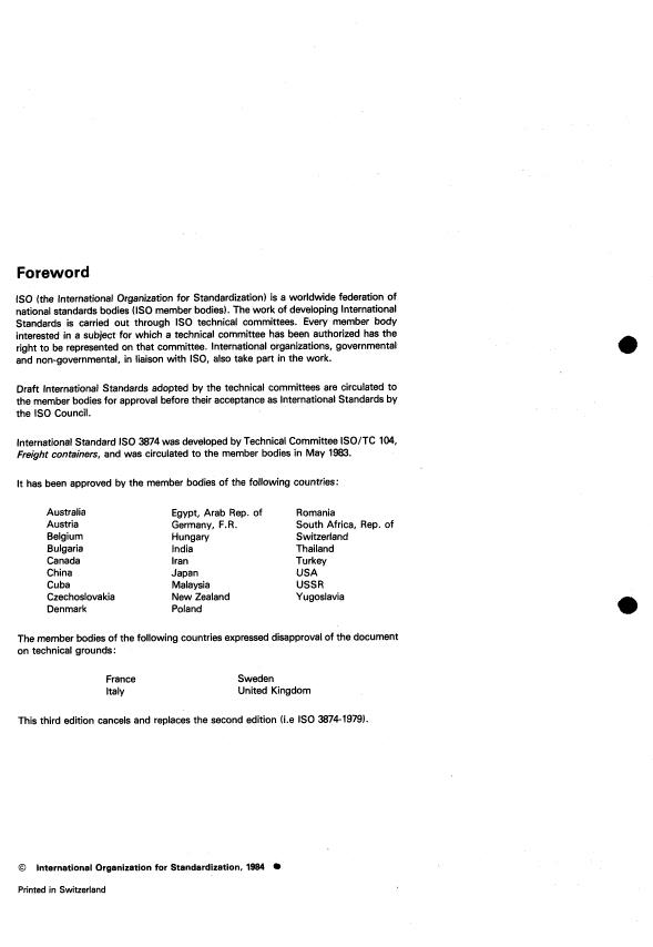 International Standard IS0 3874 was developed by Technical Committee ISO/TC 104,