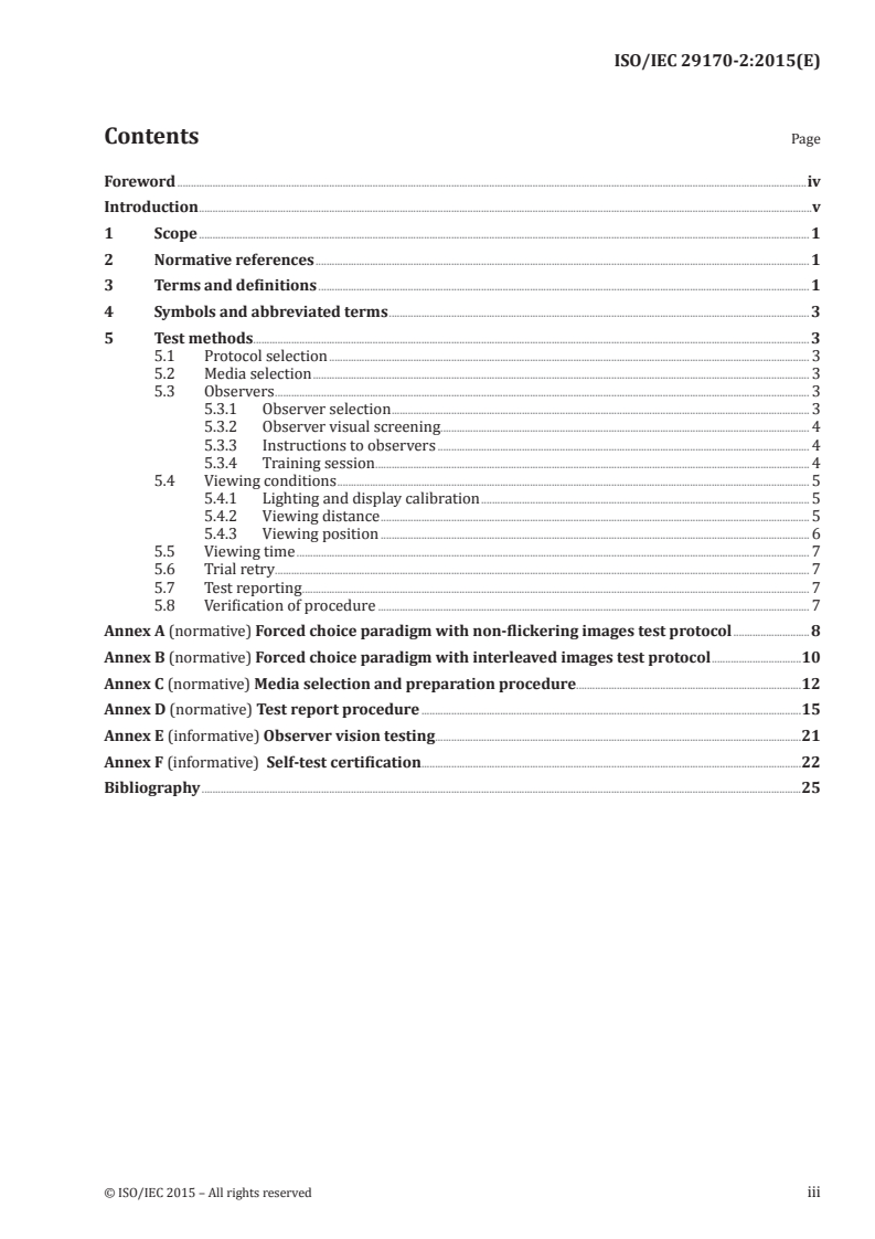 - Test protocols: Two forced-choice methods are defined - a non-flickering paired comparison (Annex A) and a more sensitive interleaved-image forced-choice test (Annex B).