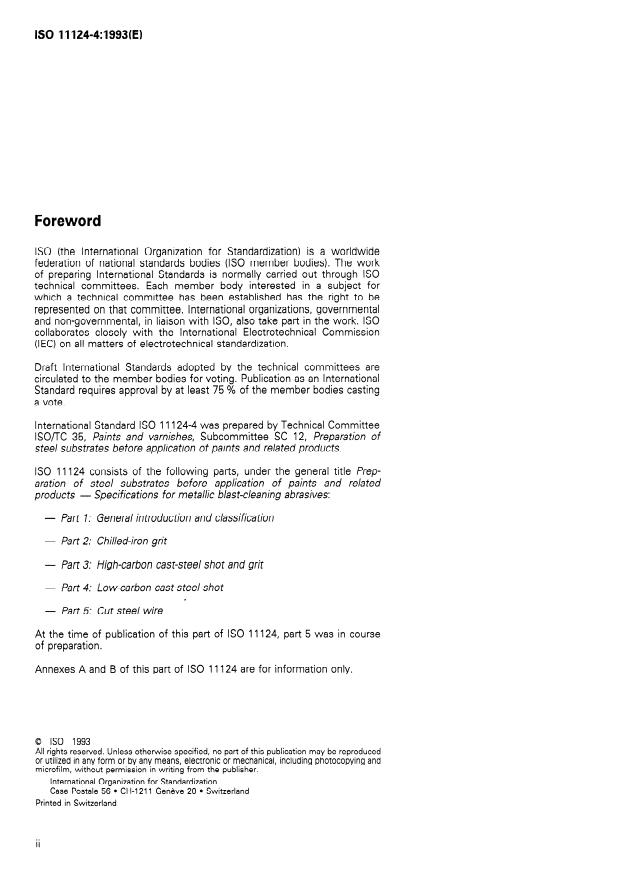 ISO 11124-4:1993 - Preparation of steel substrates before application of paints and related products -- Specifications for metallic blast-cleaning abrasives
