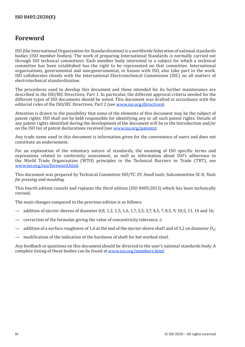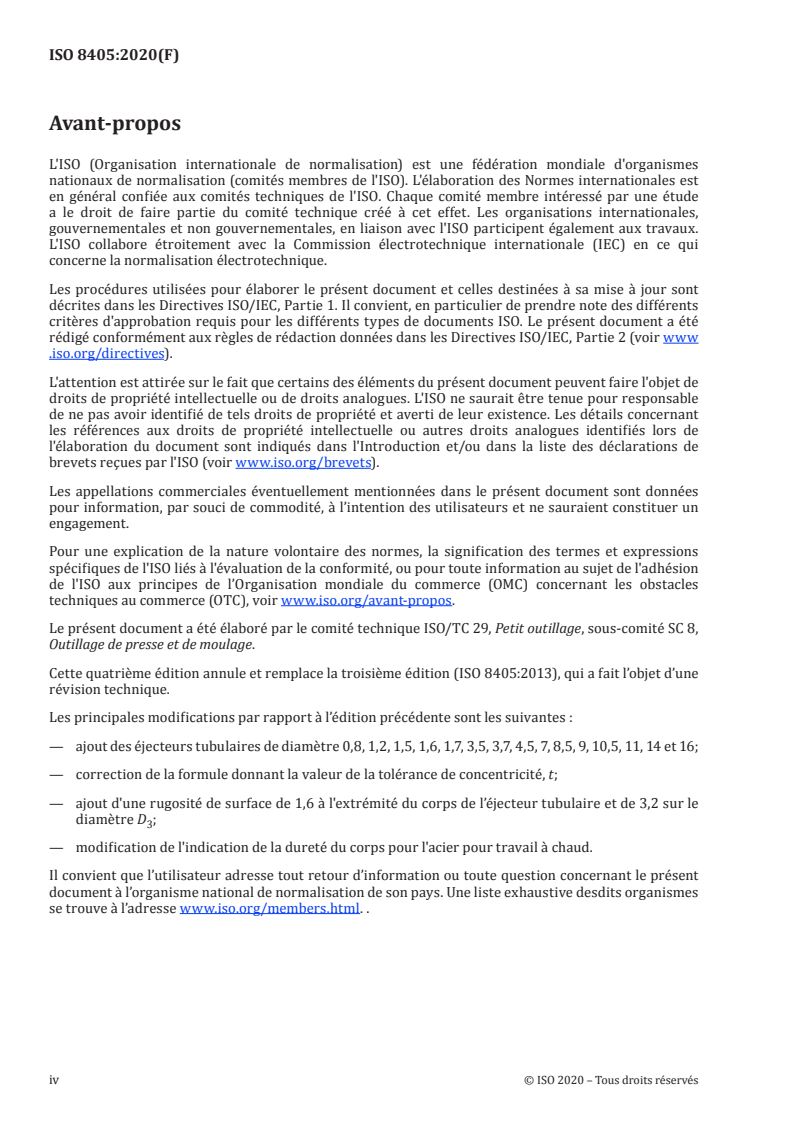 ISO 8405:2020 - Outillage de moulage — Éjecteurs tubulaires à tête cylindrique — Série de base pour usages généraux Released:10/19/2020