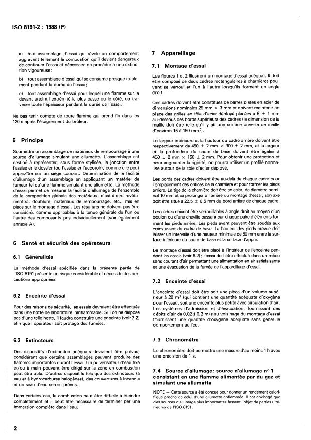 Keywords: ISO 8191-2, upholstered furniture ignitability, match-flame equivalent, upholstery fire test, ignition test method, smouldering, flaming ignition.