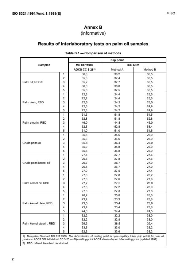 “The results of interlaboratory tests on palm oil samples are given in annex B.”