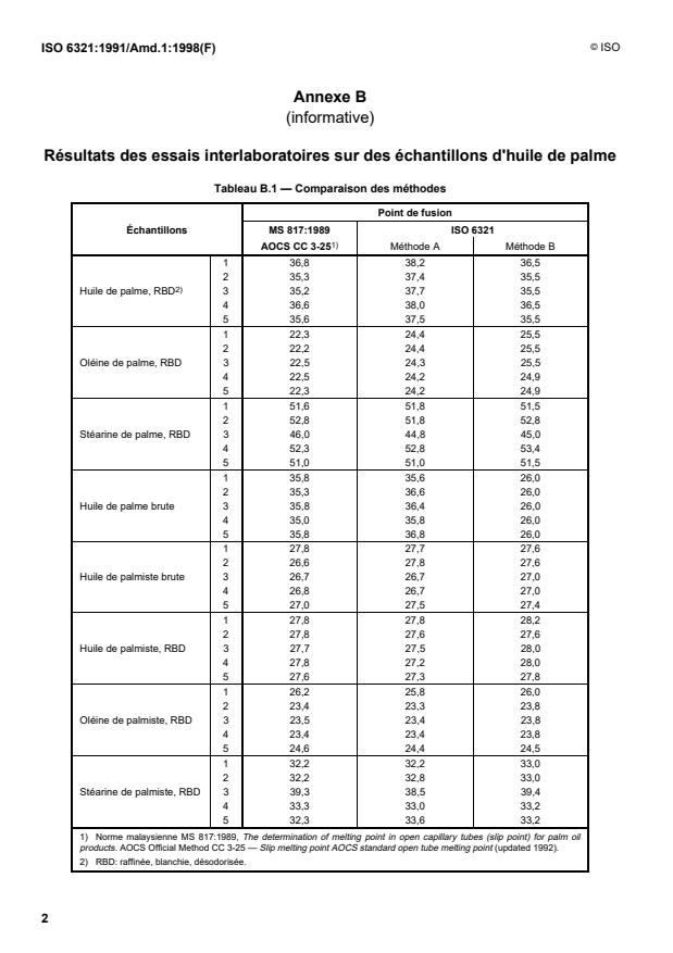 «Les résultats des essais interlaboratoires sur des échantillons d'huile de palme sont donnés dans l'annexe B.»